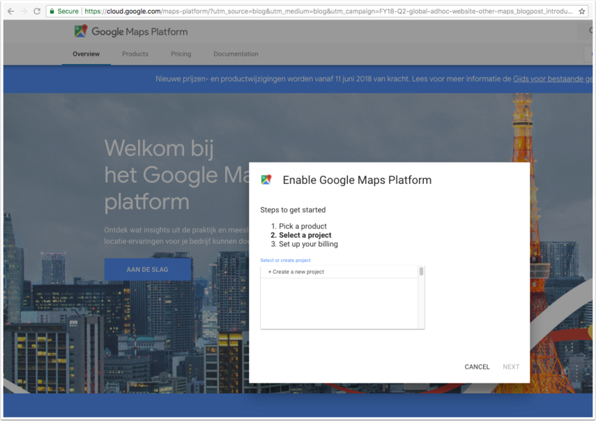 Om je Google maps api key aan te maken doorloop je het onderstaande stappenplan.