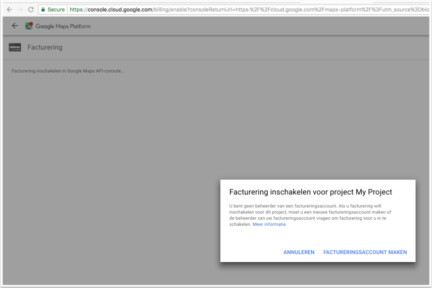Vanaf 11 juni heeft Google het Google Maps Platform geïntroduceerd (zie dit bericht voor meer informatie). De reden hiervan is dat Google het gebruik van Google Maps wilt reguleren. Je mag van Google nog steeds gebruik maken van Google Maps maar je moet hier een eigen API key voor aanmaken. Je mag voor $200 gebruik maken van de diensten. Wanneer je "grootverbruiker" bent van Google Maps zul je moeten gaan betalen voor het gebruik van Google Maps.