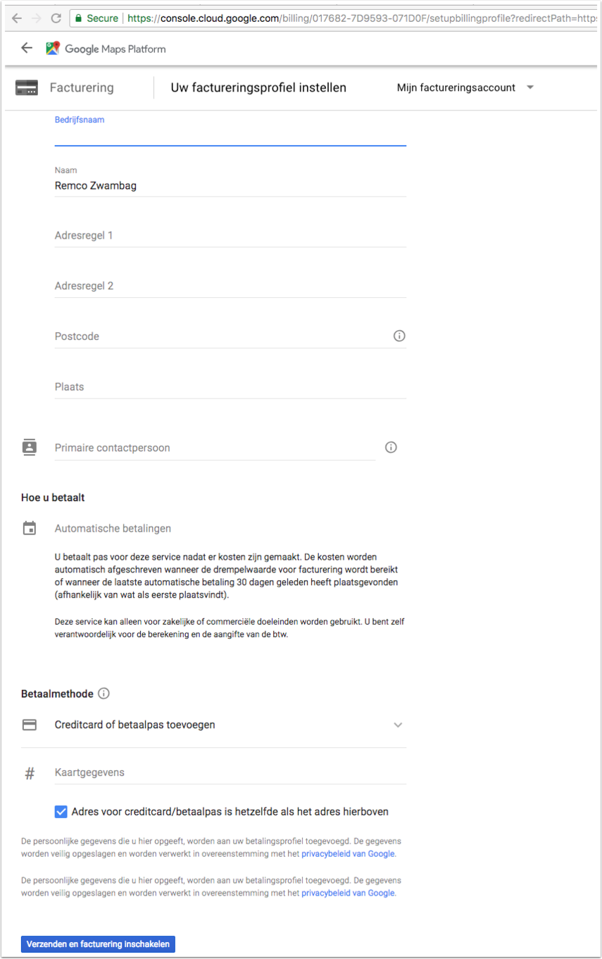 Mocht je vragen hebben of even hulp nodig hebben bij het aanmaken van het Google Maps account, laat het dan gerust weten!