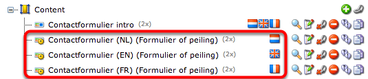 Een formulier op zich kan niet vertaald worden. Er wordt één formulier aangemaakt per taal waarin het gepubliceerd wordt. Hierdoor is er de flexibiliteit om per taal eventueel andere velden in te zetten.